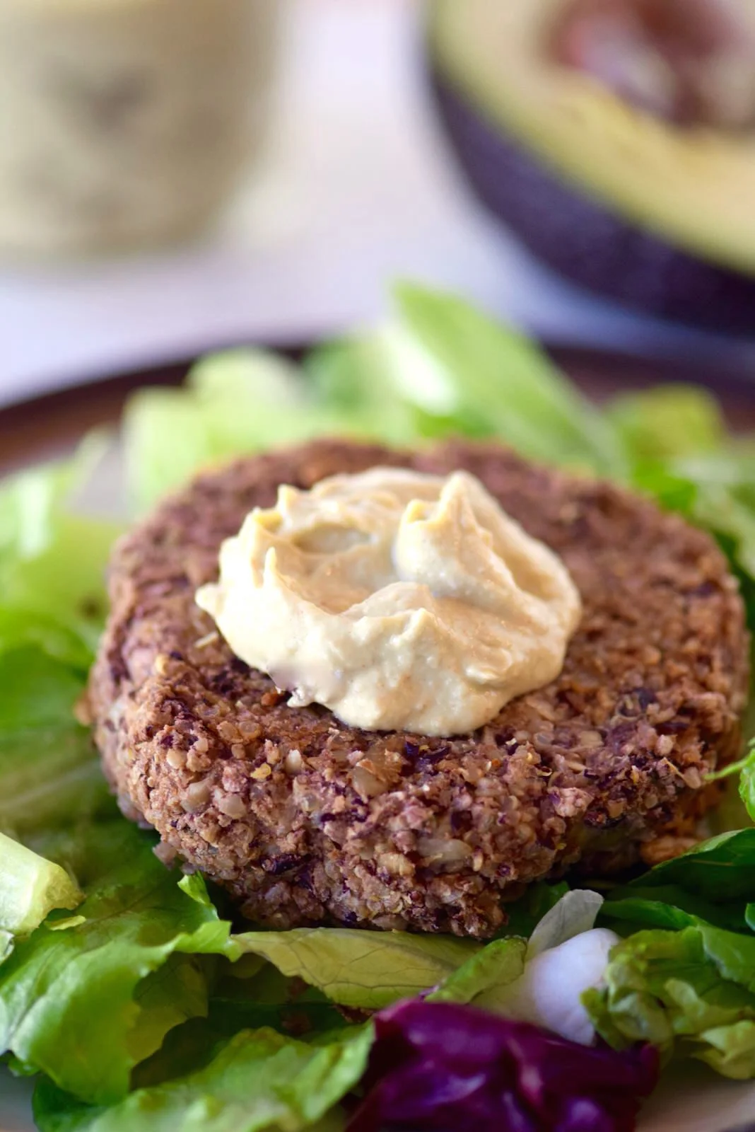 /Avocado tahini sauce is a great topping for veggie burgers or use it as a dip with fresh vegetables. It's gluten free and vegan and has a secret ingredient of algae oil, a fab new staple you need in your pantry.