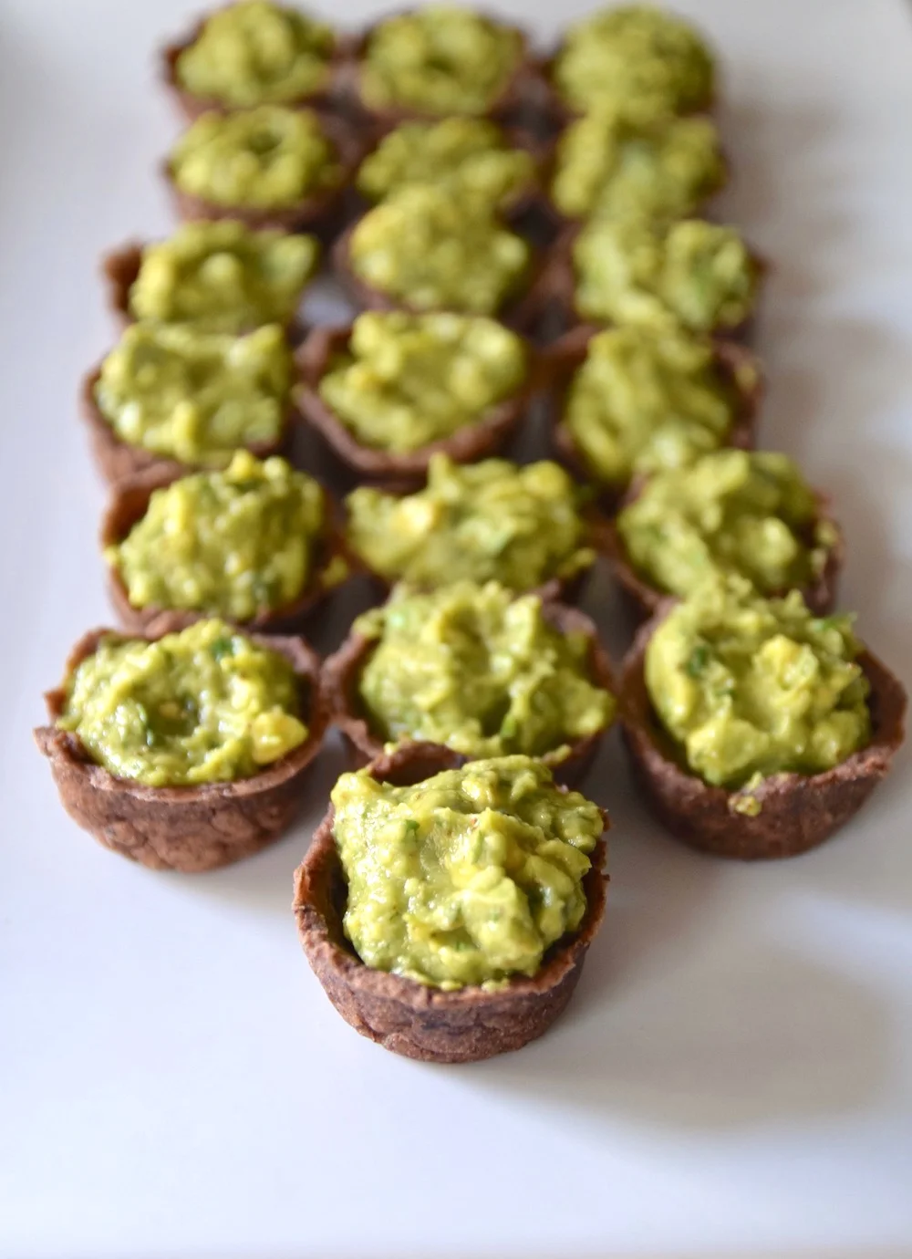 - When the black bean cups are cool, fill them with a scoop of guacamole and enjoy!