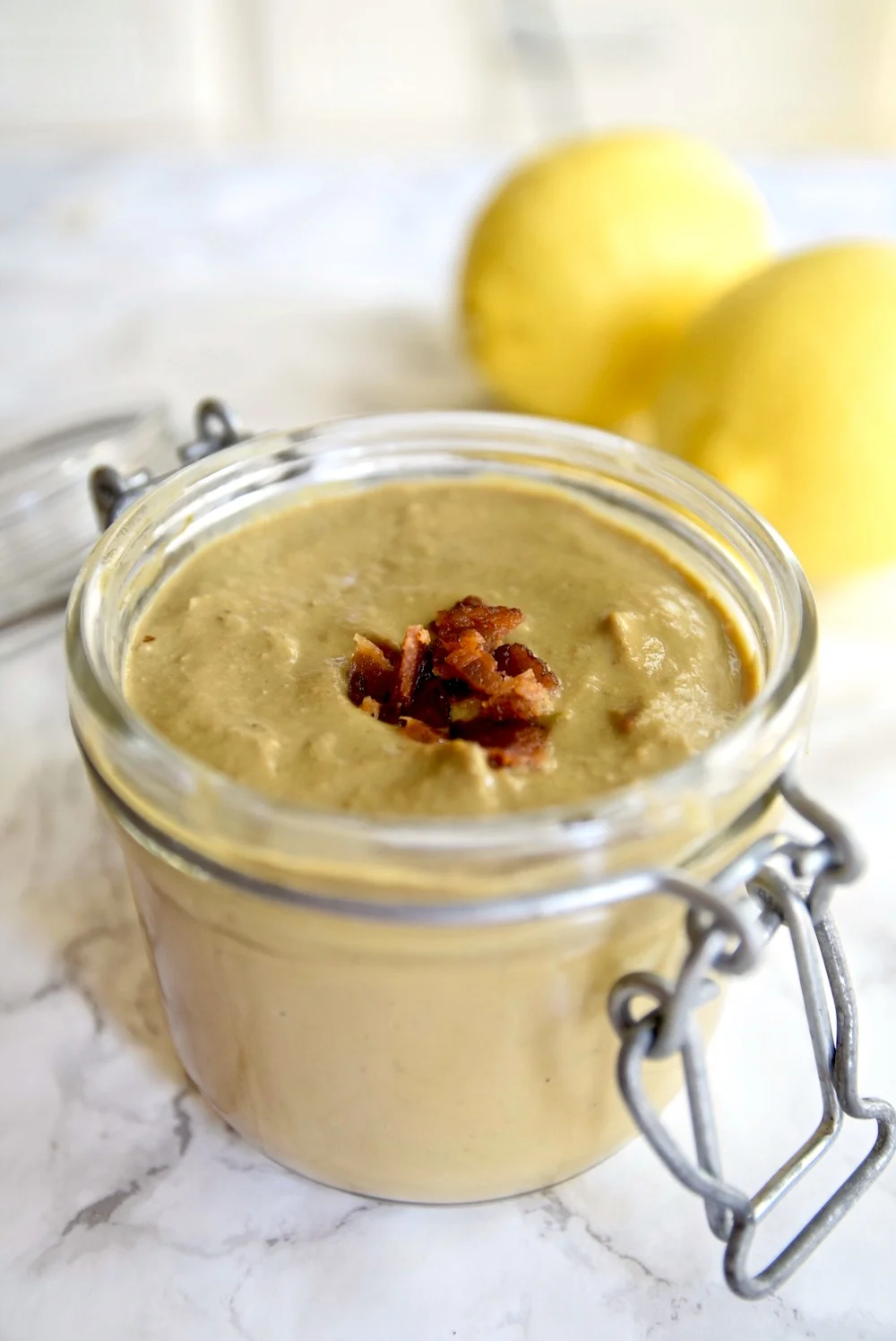 Divide the mixture into several glass jars for storing. Jars can be frozen. When ready to serve, sprinkle with bacon on top.