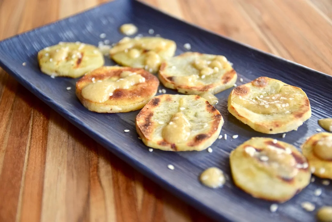 Grilled Sweet Potatoes with Miso Ginger Sauce