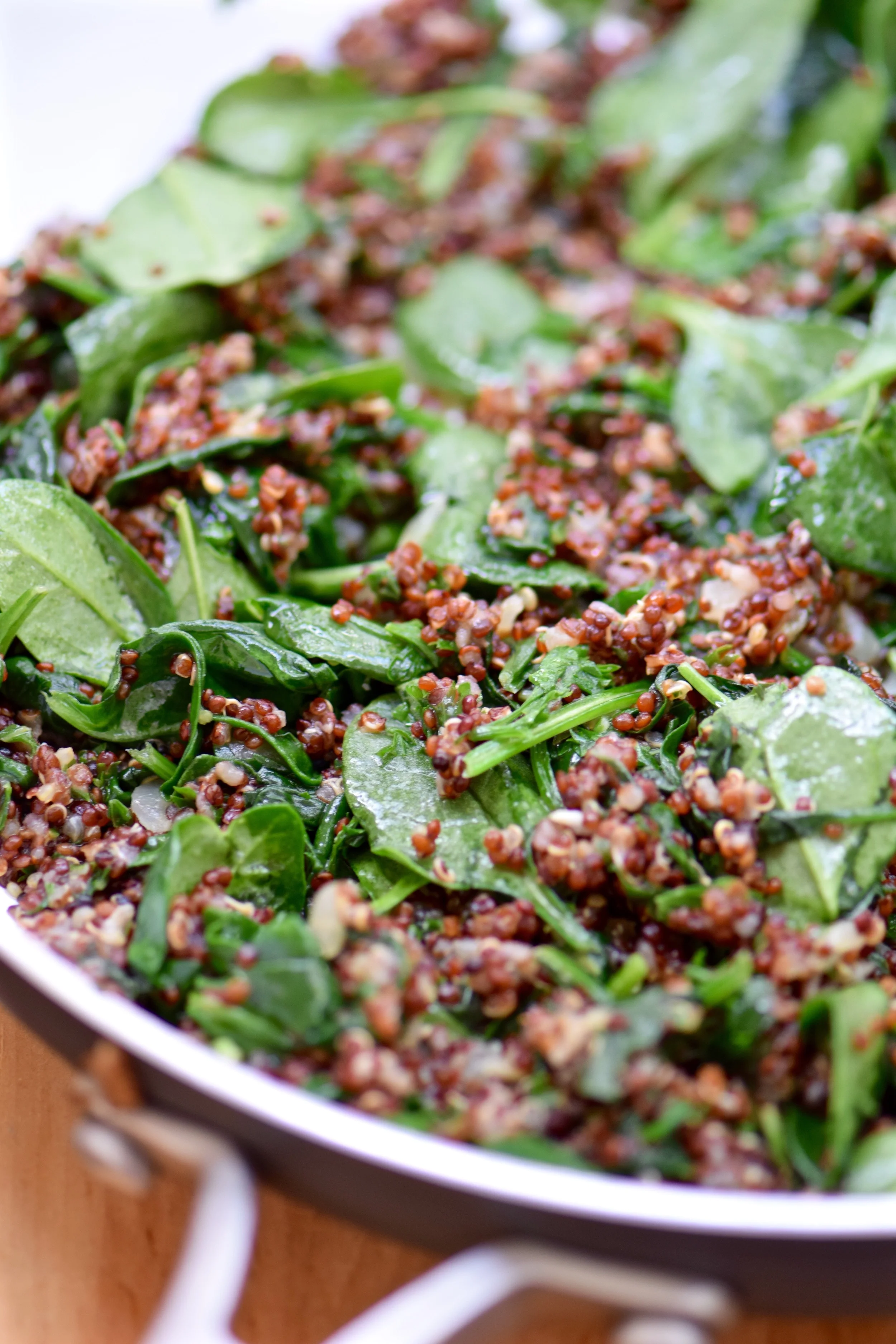 Add the spinach, quinoa, parsley and basil and stir until combined and spinach has wilted - about 1-2 minutes. Remove from heat and cool slightly.
