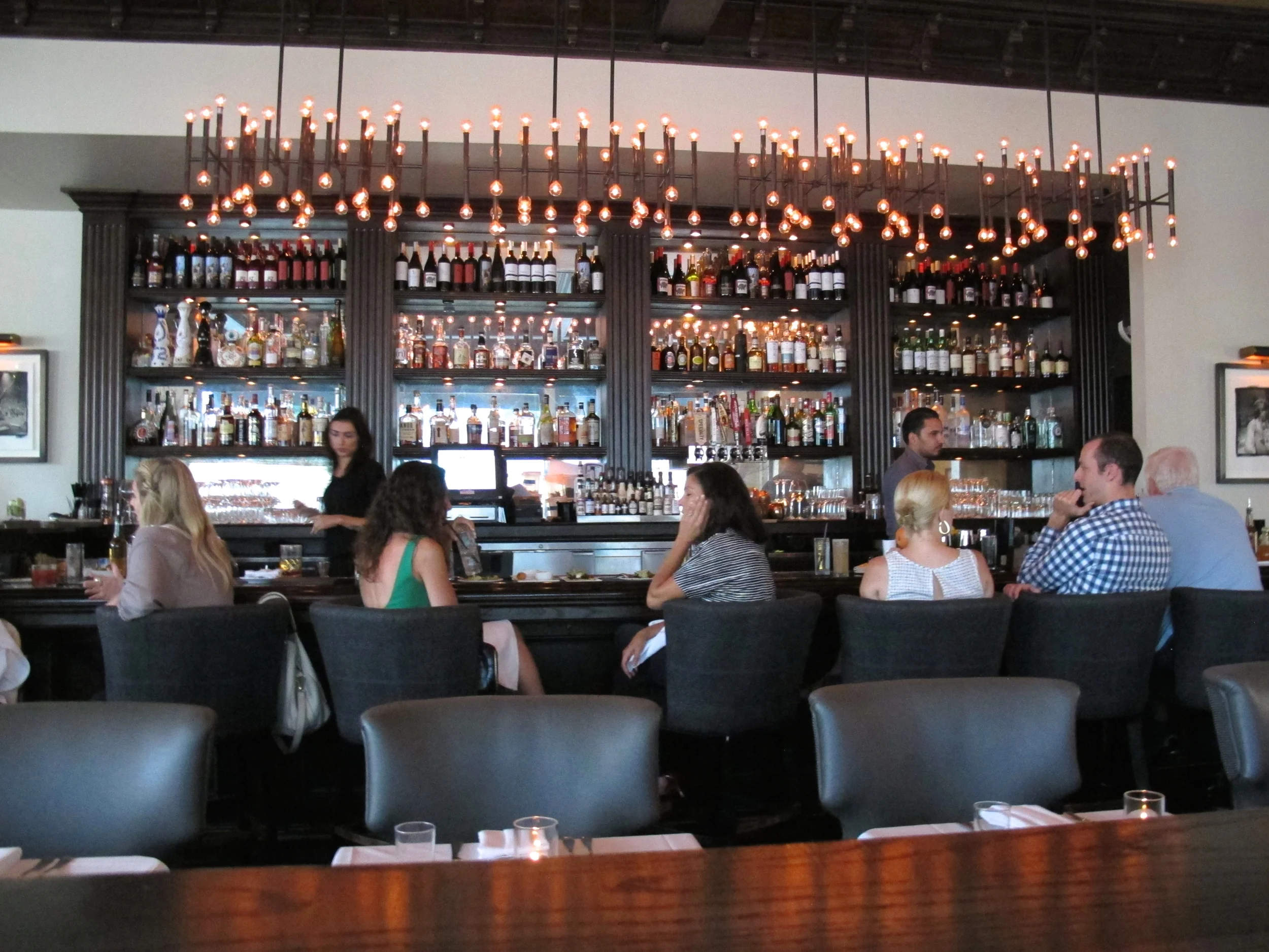 The dining room is quite Hollywood plush with oversized leather chairs that warmly embrace you when you sit. The bar is beautiful and pumping out interesting concoctions like a smoked mushroom infused bourbon topped with lime and agave, with a truffle dill cheese tuille floating on top. My "Happy Harlequin" had a great mix of lemon, mint and cucumber, but lest it sound too familiar, a blackberry hibiscus mamma chia is thrown in for good measure, and health.