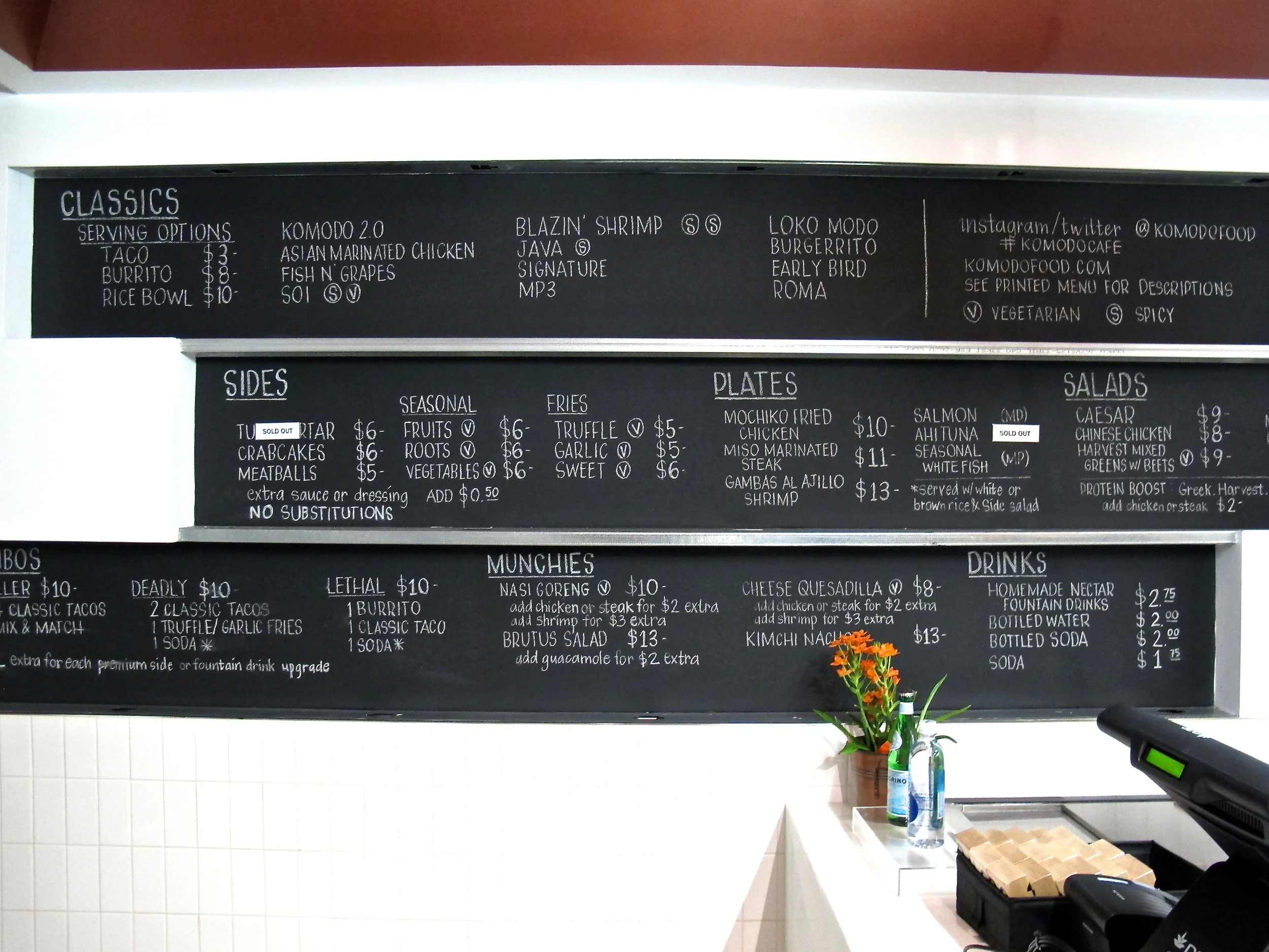 I checked out the latest and largest Komodo outpost on Main Street. They took over the old Baja Fresh location which I will admit, I was sad to see close. When my fridge was empty, it was nice to have a shrimp taco or salad waiting for me down the street, so my fingers were crossed Komodo could also serve as a reliable back-up kitchen.