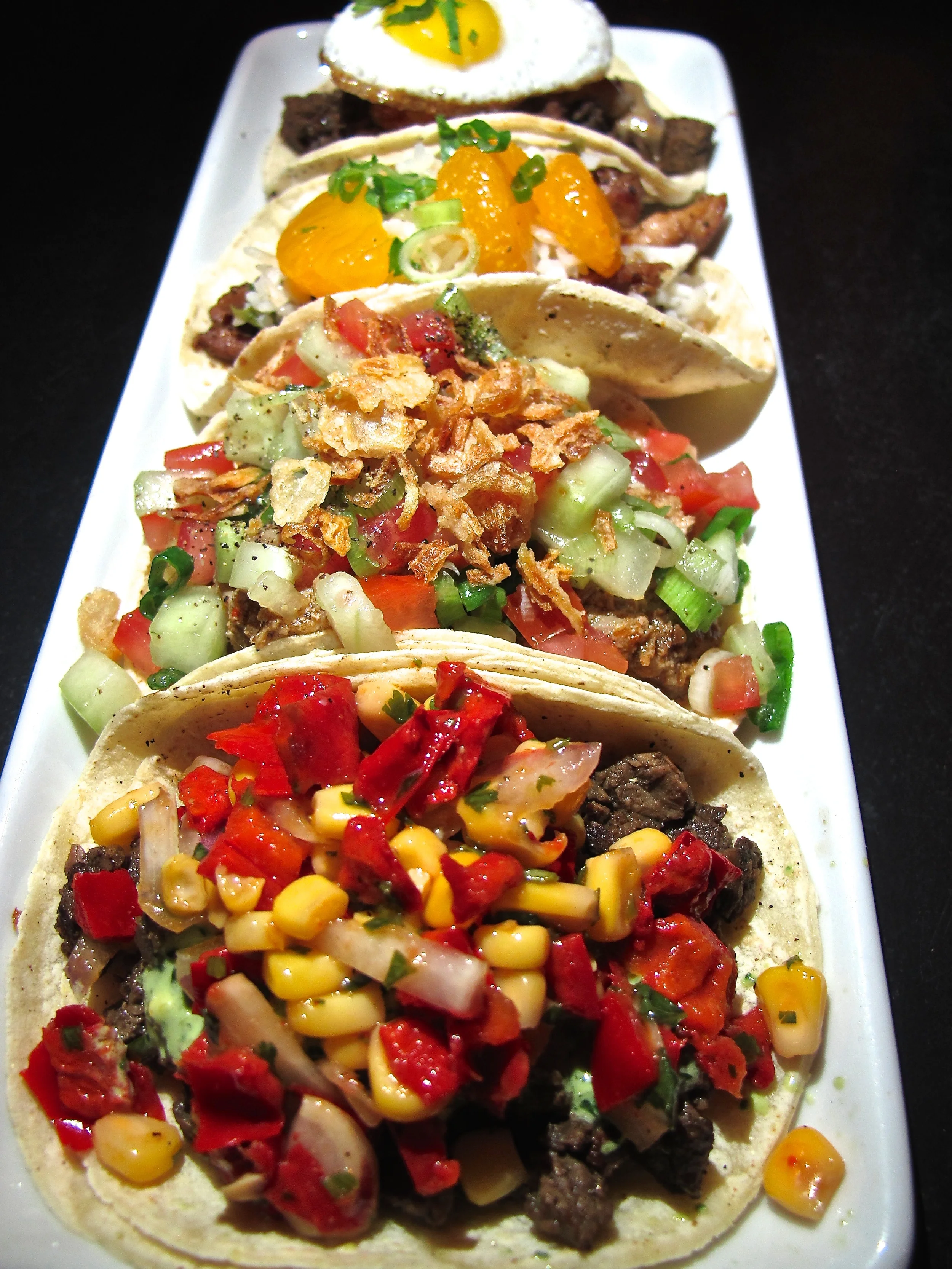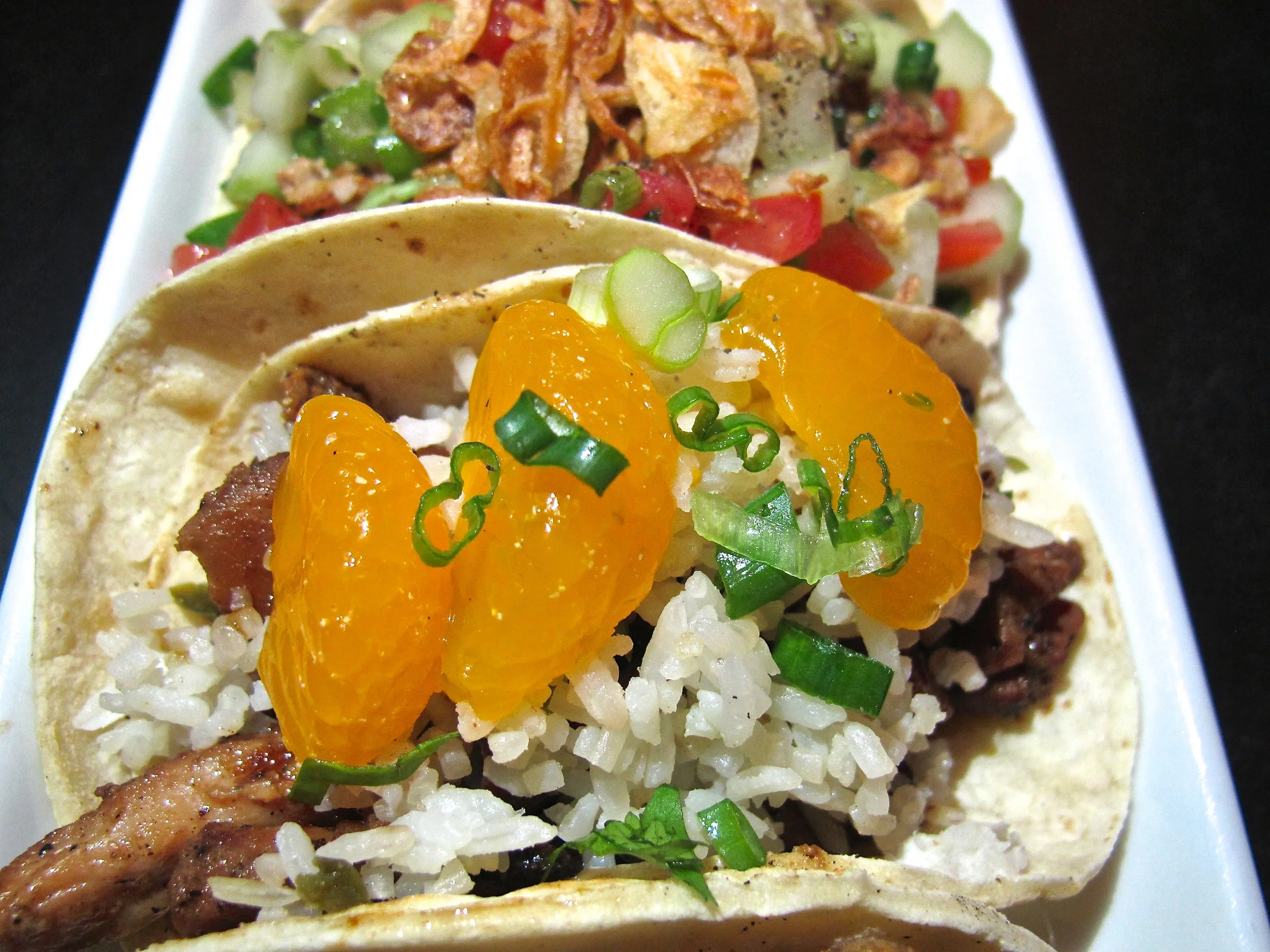 The Asian Marinated Chicken was grilled with rice and mandarin oranges. It was fine, but probably the least special of all the tacos.
