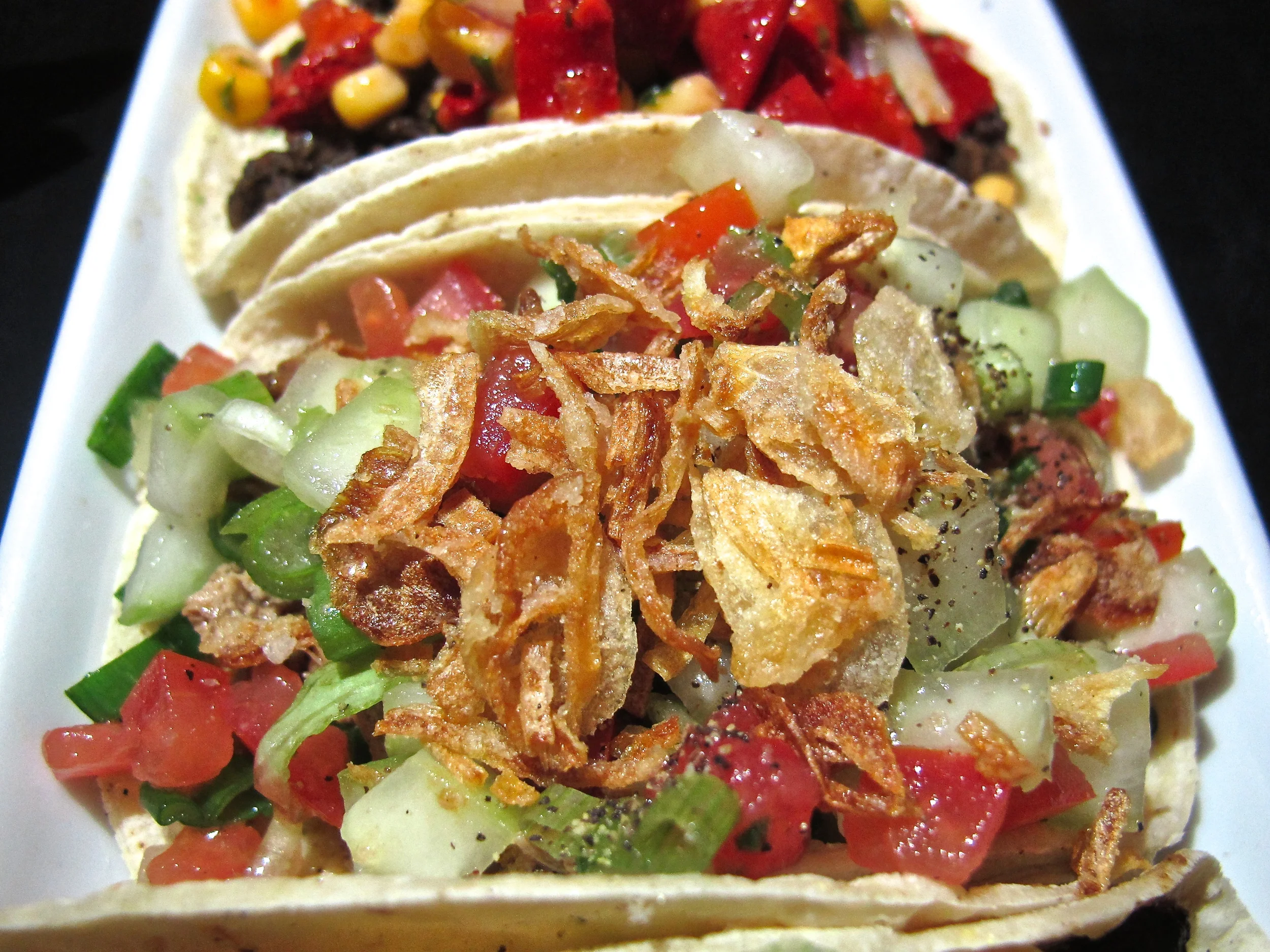 The combo deals are a good value and good way to sample several of their unique tacos. You can't go wrong with the Killer Combo which includes 4 tacos of your choosing. As you can see, they don't skimp on the fillings and offer quite a colorful presentation.