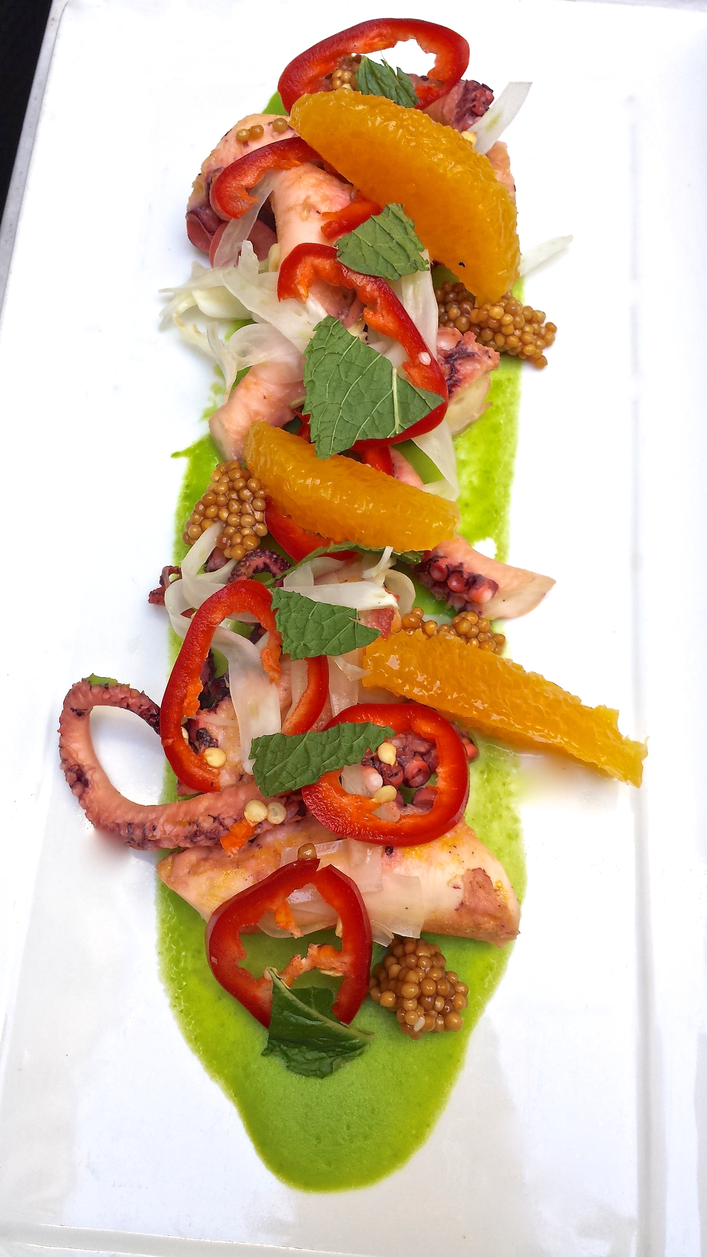 Grilled octopus was tender, but not chewy with fresh notes of fennel, fresno chile, slices of mandarin orange, mint and dollops of mustard seed throughout. Very satisfying and beautiful plating.