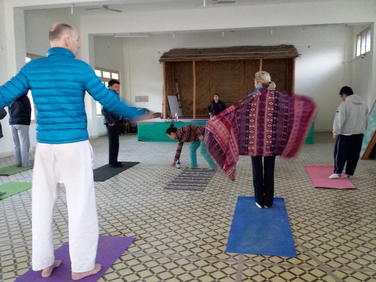 I was anxious to get on my mat and start doing some yoga, and my first chance at Parmarth was shortly after morning meditation. The yoga room was large, and very dusty, and very cold. People did yoga with their parkas on and one step off your mat, brought chalky white footprints everywhere after. The teacher was no less chilly, but I couldn't help but think, I'm in Rishikesh, India, the birthplace of yoga, doing yoga. Cool.