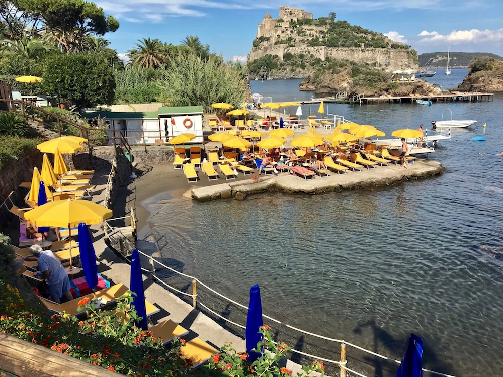 You're going to want time in Ischia to simply stare at the water and admire the Castle. There are many thermal parks on Ischia with multiple pools and activities, but my friend and I just wanted some quiet time to read and enjoy a bite. We got everything we wanted at Gardenia Mare.